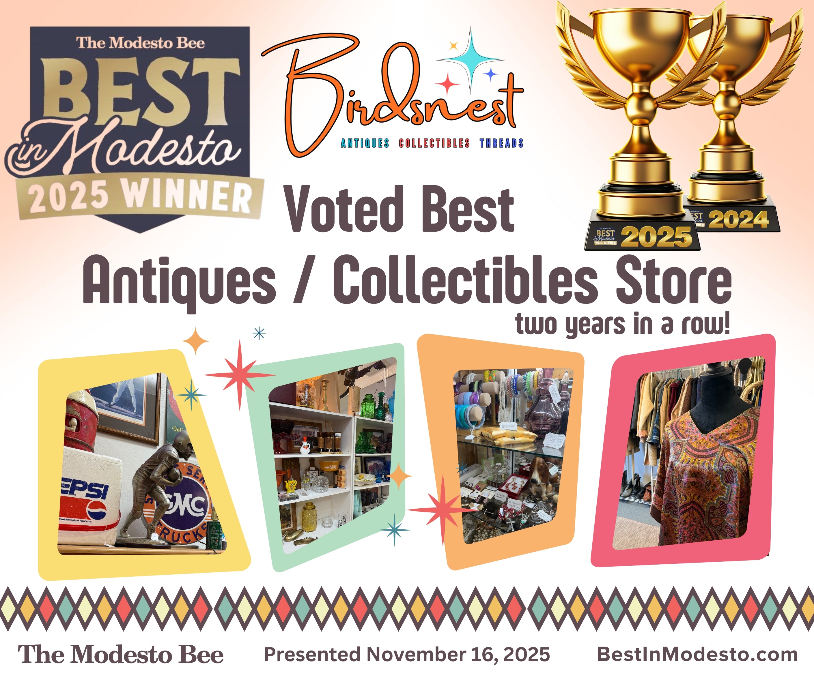 Whether you sell vintage finds, handmade goods, tasty treats, or unique treasures, we’d love to have you as part of The Birdsnest Market family! 🐦💛