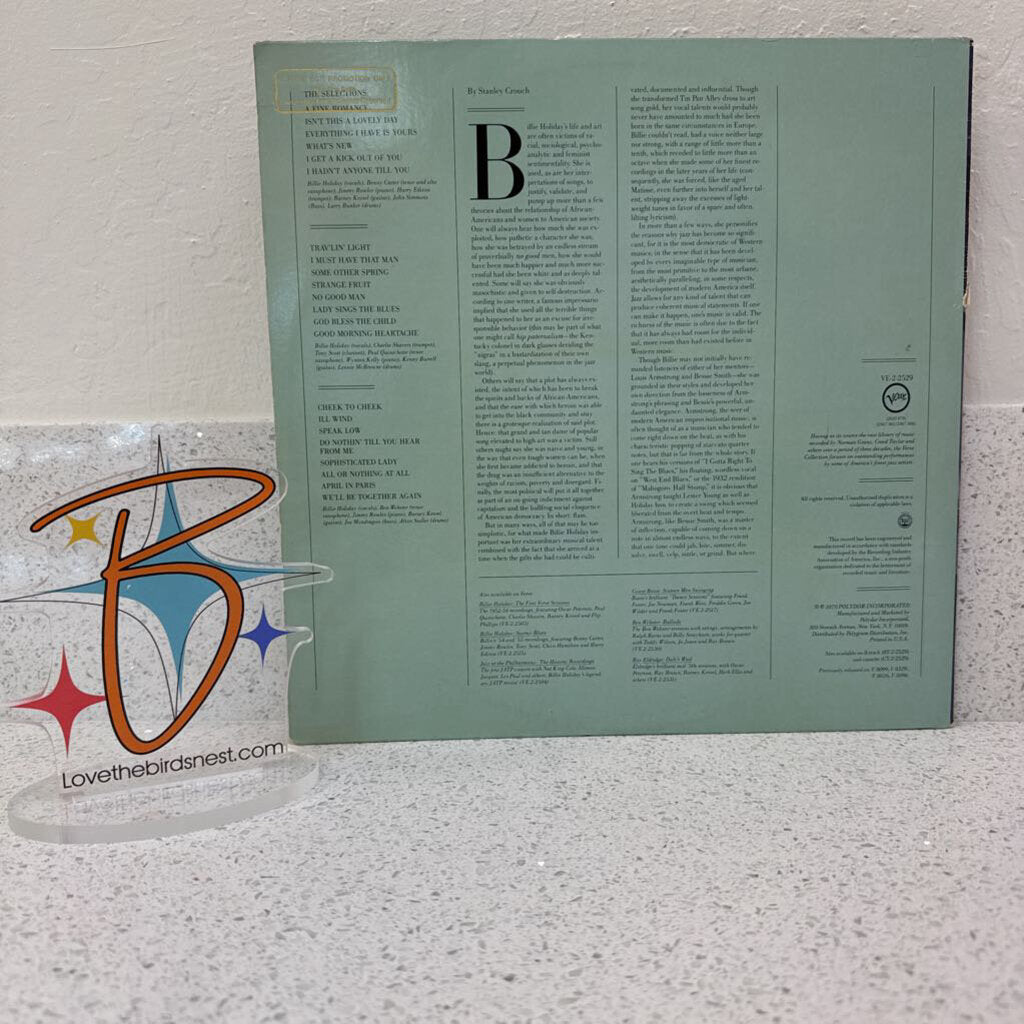 A 2 record set white label promo with 22 selections from the great singer (VERVE VE-2-2529). Backup musicians include Ben Webster, Benny Carter, Wynton Kelly and more. The records are in excellent shape with minimal cover wear.