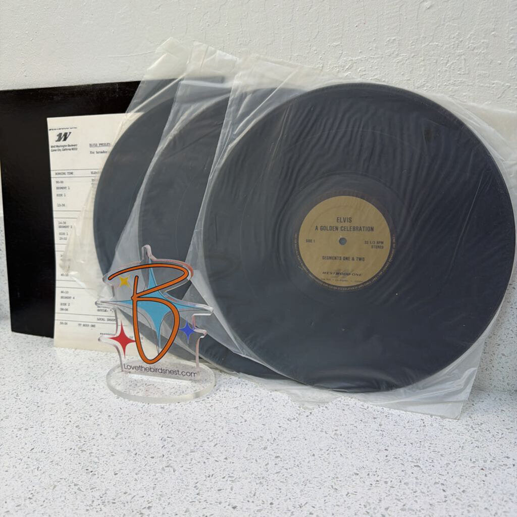 Ultra Rare 3 record set issued only to radio stations for a Westwood One special of Elvis' Golden Anniversary. featuring interviews and music. Vinyl in pristine condition. Includes cue sheet for radio airplay.