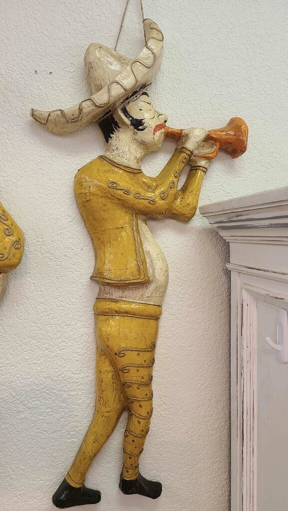Jina Valentine is and American Postwar & America artist born in 1980. Paper Mache 5pc Mariachi Band. Pieces vary from 26in to 34in in heights.