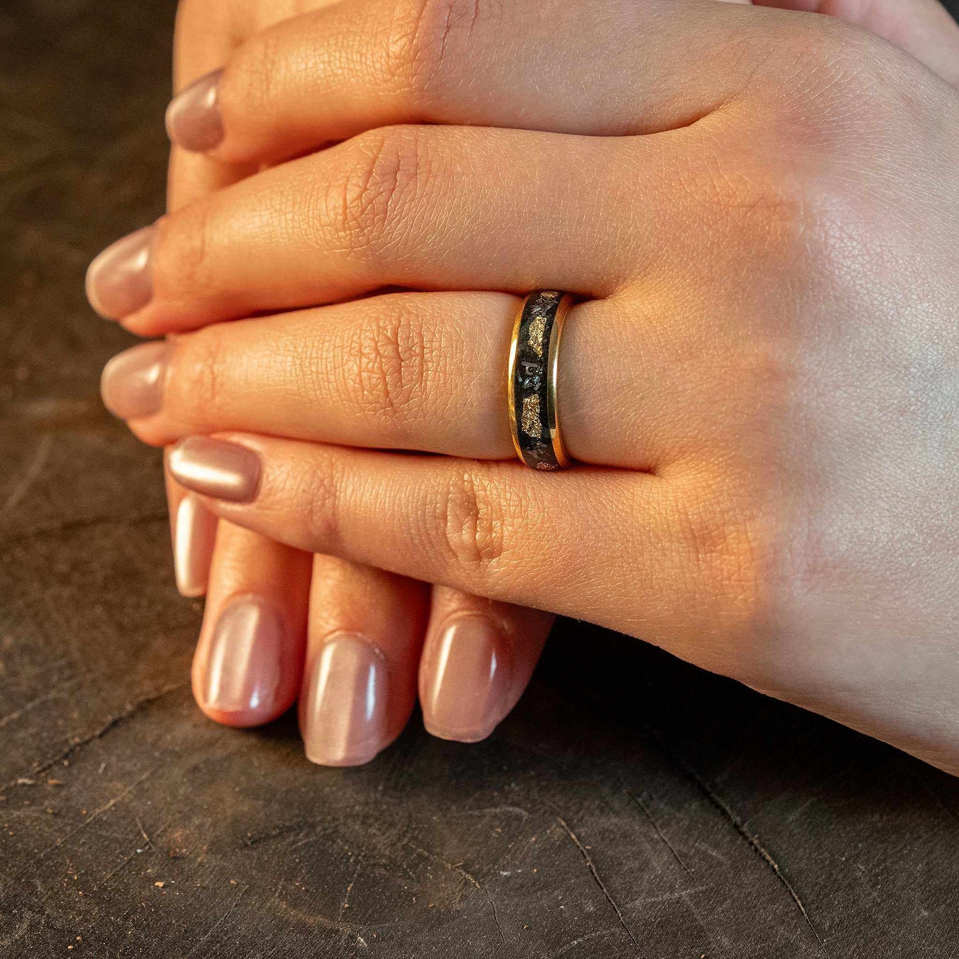 Meteorite x Gold Leaf Tungsten Carbide Ring - 6mm